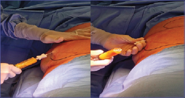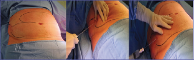 Figure 2.Infiltration of Klein’s solution at the level of the abdominal adipose tissue.