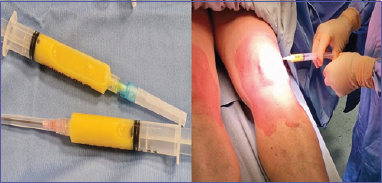 Figure 5.Autologus microfragmented adipose tissue (MF-AT) and knee joint infiltration.