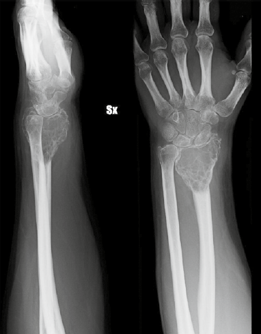Figure 1.Male 28ys. GCT of the distal radius after denosumab medical treatment.